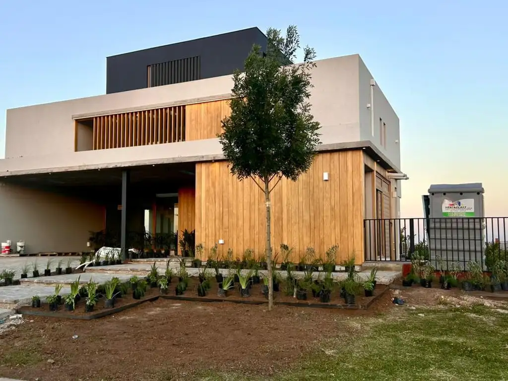 Construcción: Las carpinterías son de PVC, perfiles REHAU, foliada color madera color Turner. Doble Vidrio. Calefacción por losa radiante en toda la casa y en la galería. La puerta principal es de madera maciza en Kiri. El piso interior de la casa es de MARMOL TRAVERTINO turco. El sistema esta alimentado con el agua caliente provista por 2 Calderas Baxi Eco 240 Fi Digital Dual Tiro Forzado (ventilación forzada).