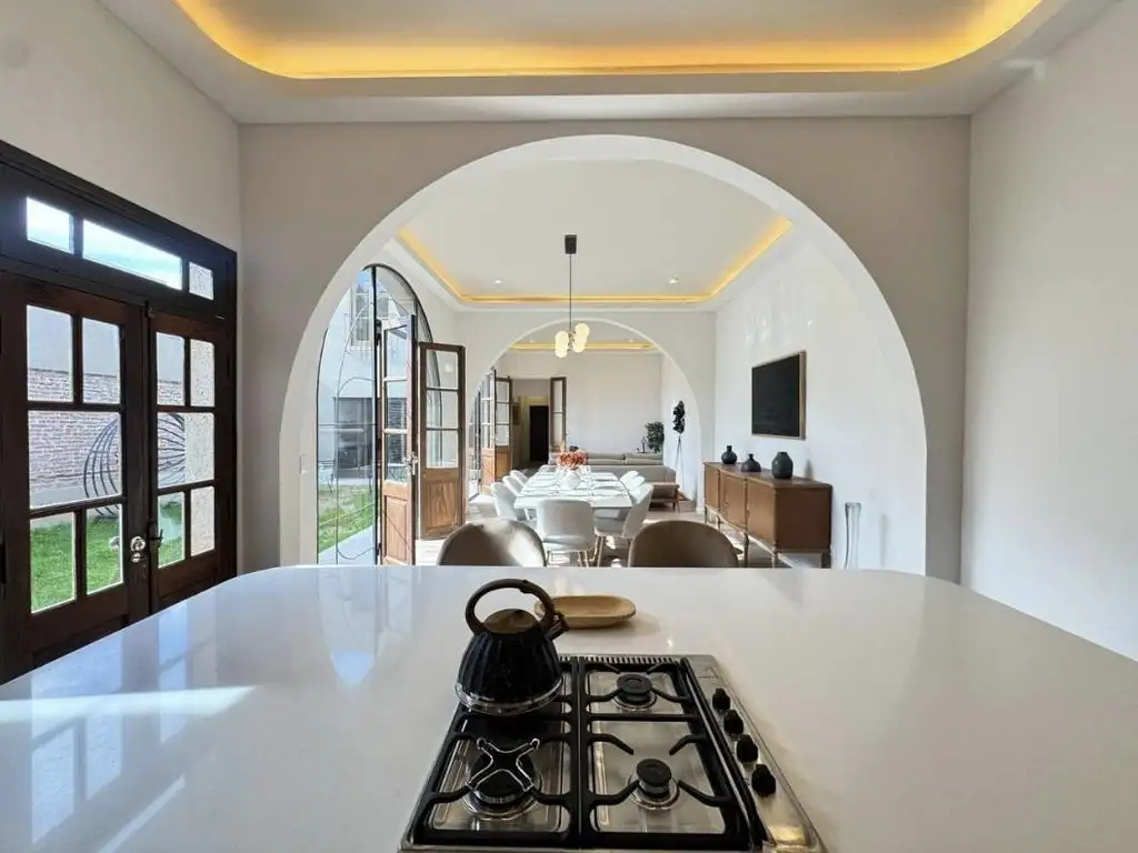 Planta Baja: En el ingreso nos encontramos con un sector para estudio/comodín, y una cochera para un vehículo que puede ser utilizada como quincho, con parrillero. Además, un baño completo, seguido por el estar comedor con cocina integrada con isla, y despensa. Dormitorio principal en suite con vestidor, galería, patio y piscina con solárium.