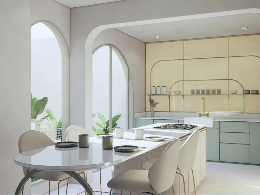 Planta Baja: En el ingreso nos encontramos con un sector para estudio/comodín, un estar comedor muy luminoso, cocina totalmente equipada con isla integrada, y un baño completo. Además un patio de 19 m2.
