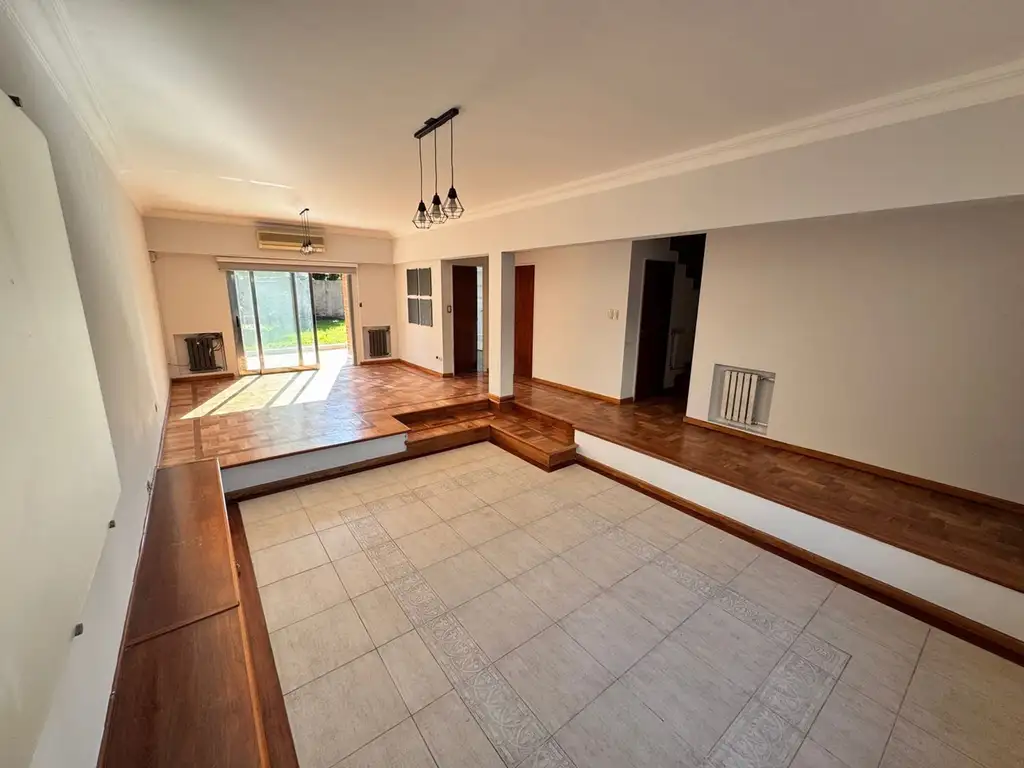PB: Al ingresar nos encontramos con un gran living comedor en desnivel, super luminoso con acceso a través de las puertas ventanas al jardin.