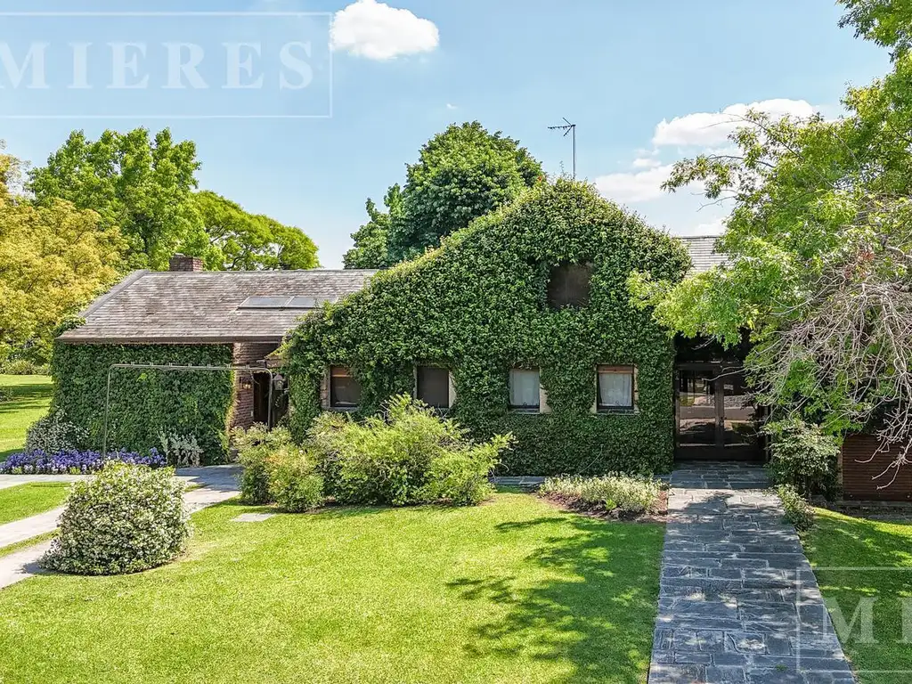 Planta baja: hall de entrada. Toilette de recepción. Living con chimenea. Comedor. Todo con salida al jardín. Jardín de invierno o sala de TV. Suite principal con doble vestidor, escritorio y baño triple. Departamento de dos dormitorios con baño completo y cocina. Lavadero. Dependencia de servicio con baño.