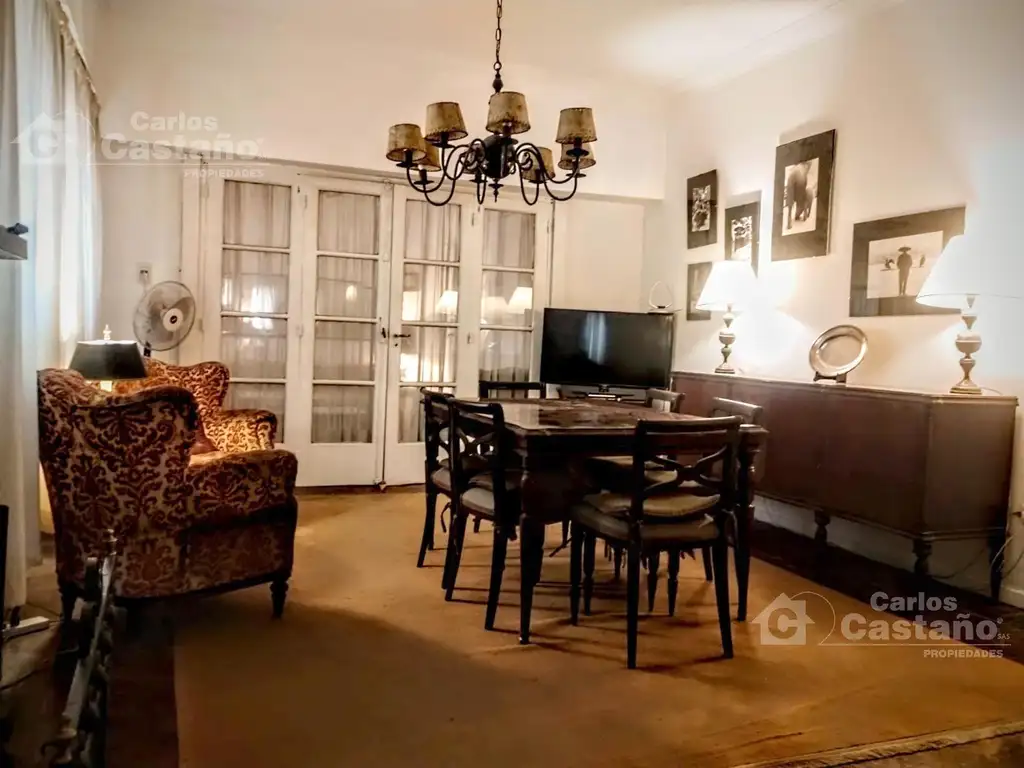 La propiedad cuenta con Hall de 3x2m; Living-Comedor de 5x4m con hogar y pisos en parquet; 3 Dormitorios con placares y piso en parquet: 1o Dorm. de 4x3m, 2o y 3o Dorm. de 4x3,5m; Baño; Toilette; Cocina de 3,5x3m; Habitación de servicio con Baño; Patio de 8x4m con Parrilla y espacio para 2 autos.
