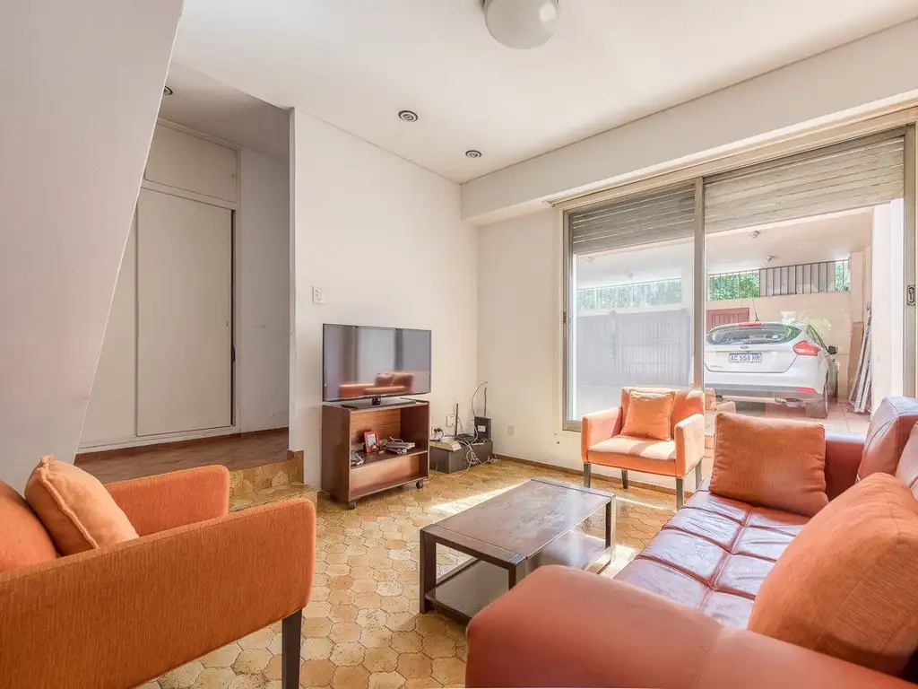 Living comedor (9.00 x 3.00) con gran ventanal al frente. Persiana. Hogar a leña que divide este espacio con el gran salón comedor. Salida al jardín trasero mediante puerta balcón de hojas corredizas.