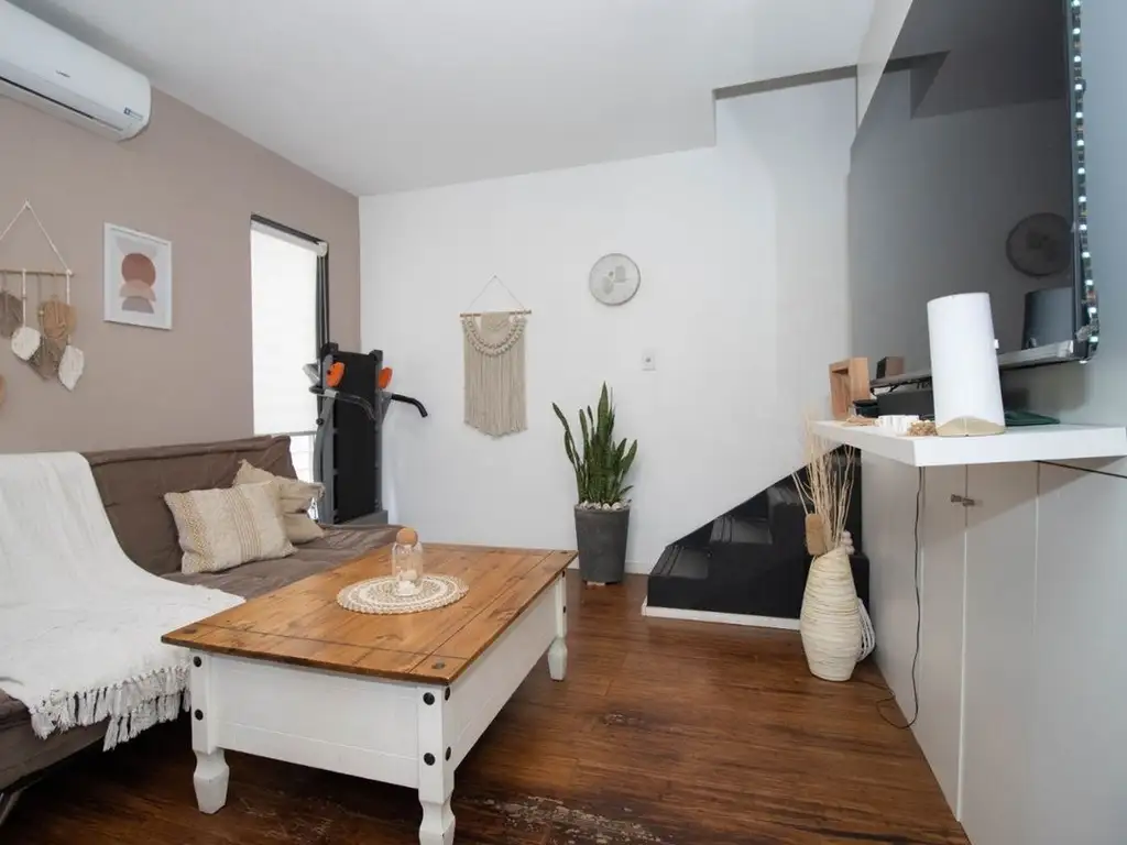 En planta baja cuenta con living con cocina integrada, semi equipada y con aire acondicionado. En planta alta dispone de dos dormitorios luminosos y un baño completo.