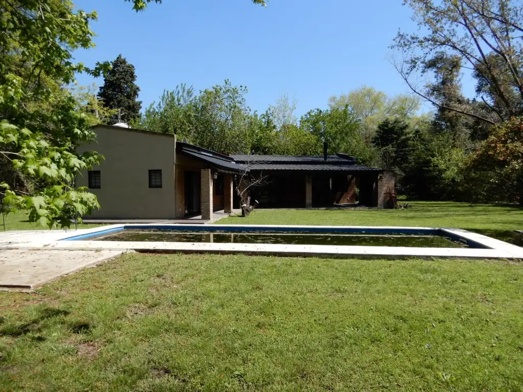 En el parque está una muy buena pileta de material, glorieta, saca de madera del arbol y abajo un galpón de chapa.