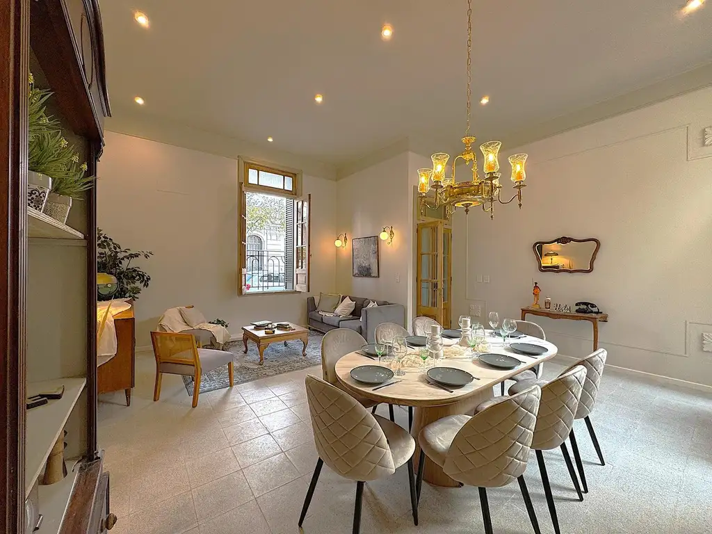 Casa al frente reciclada que combina un estilo moderno con detalles vintage, con instalaciones completamente nuevas y materiales de primera calidad. La misma está dispuesta en dos plantas de la siguiente manera: