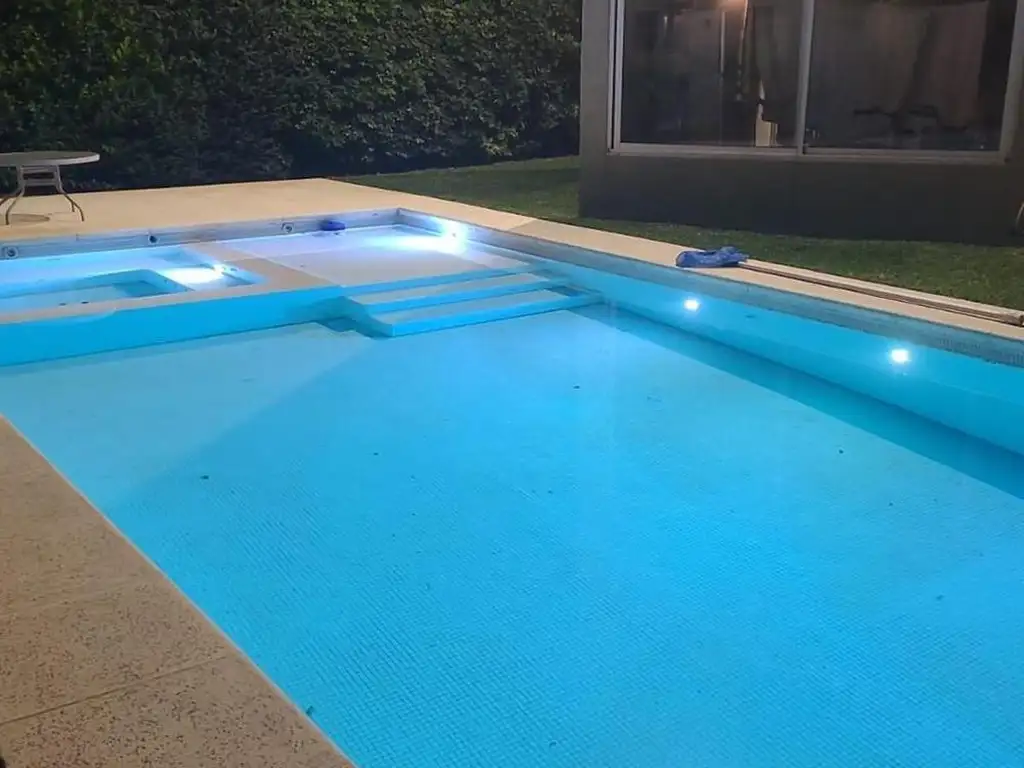 En PB: hall de recepcion , toilette, placard de recepción, cocina, living, comed ppal, pileta, parrilla, galería cubierta, PA; 2 dorm c bño completo , suite con escritorio y vestidos. Detalles de categoria.