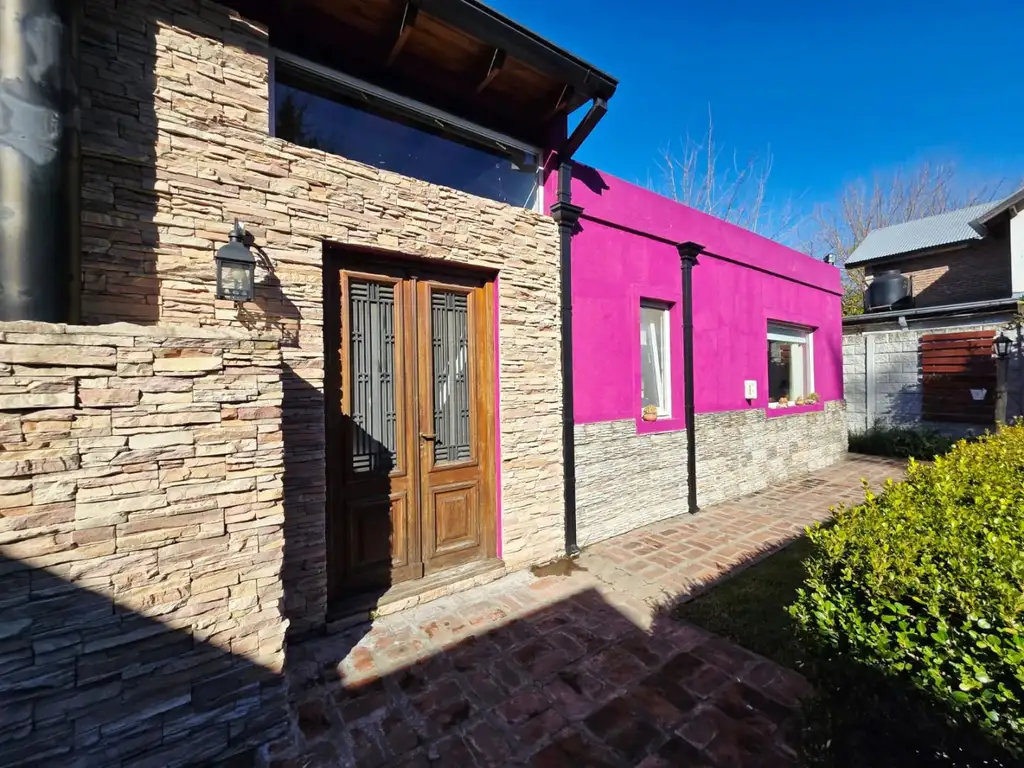 Amplio living comedor en desnivel con grandes ventanales, muy luminoso, el cual cuenta con un hogar Tromen, cocina con comedor diario, habitación en suite con vestidor, segundo dormitorio muy amplio con otro baño completo, lavadero independiente.