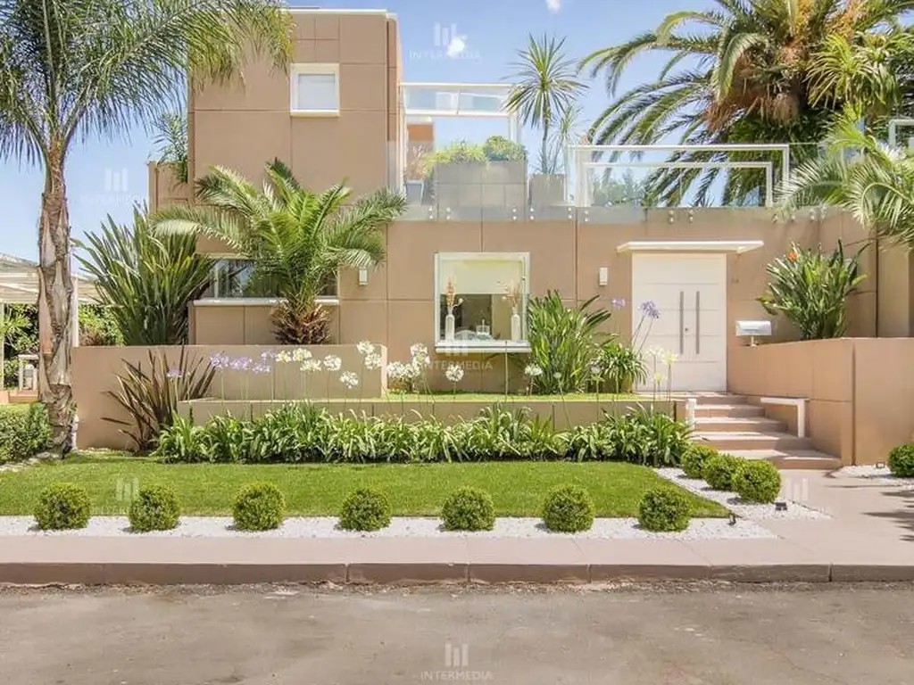 Imponente propiedad en impecable estado, construida con excelentes materiales de construcción y diseño. Muy luminosa, amplia y funcional. Planta baja: Hall de entrada, living con hogar, comedor, cocina, un dormitorio y un baño con ducha. Family amplio cerrado con parrilla. Lavadero. Planta alta: dos dormitorios y un baño completo. Dos galerías y amplia terraza con vistas al parque. Exterior: amplio parque con pileta climatizada de 17x6, galeria. Cochera cubierta para dos autos. Posibilidad de vender amoblada.