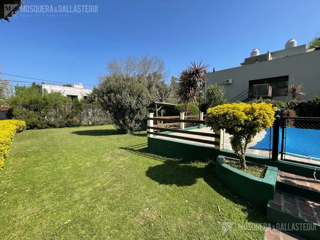 Jardín, pileta con filtro y reja, dependencia con baño. Bomba presurizadora.