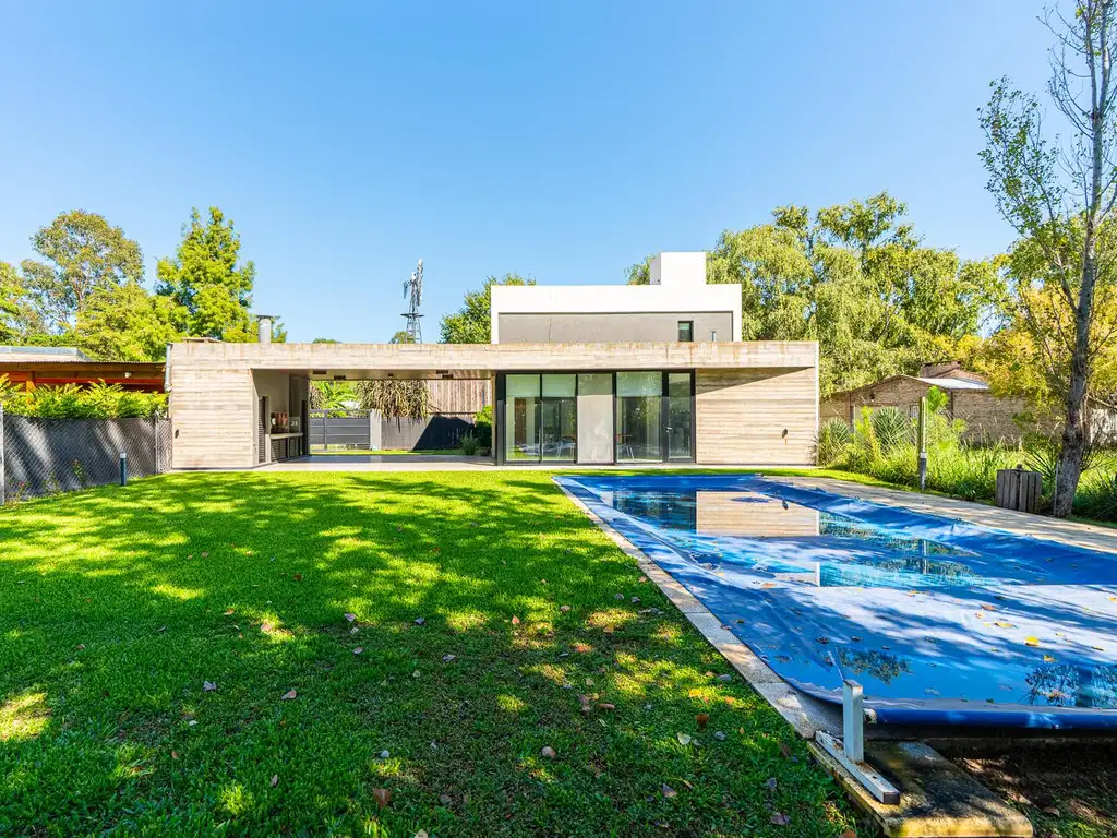 Amplio jardin parquizado con pileta y quincho con parrillero y baño.