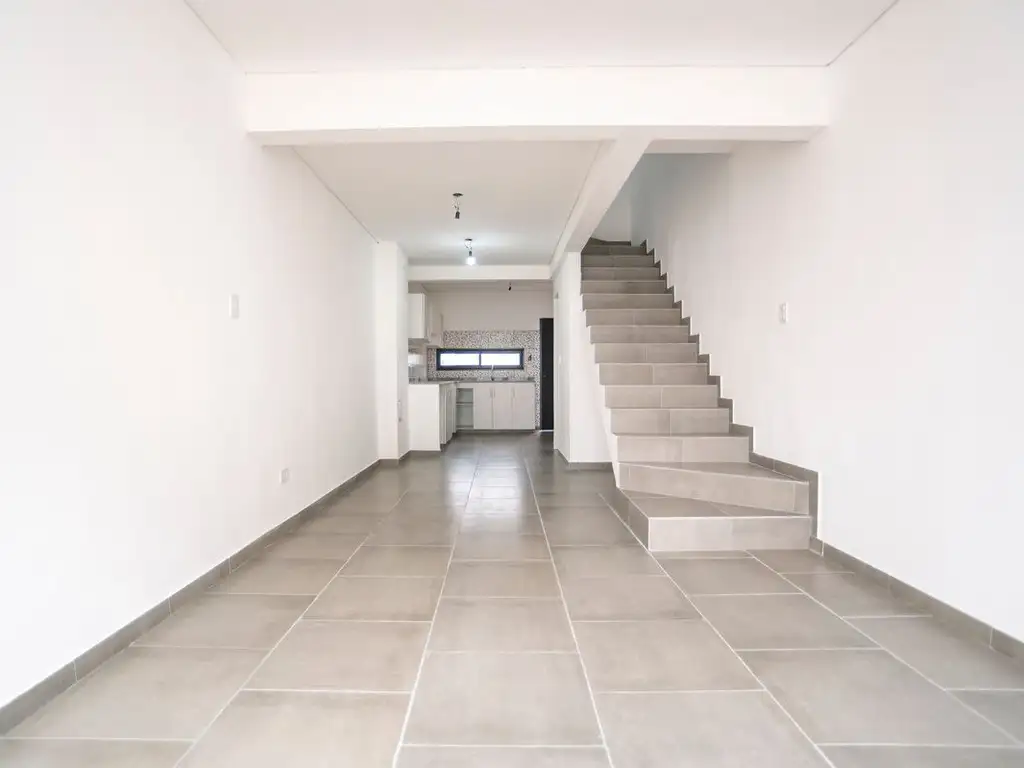 En planta baja, cochera abierta, cocina, living/comedor, toilette y patio con cerco de 2M de altura.