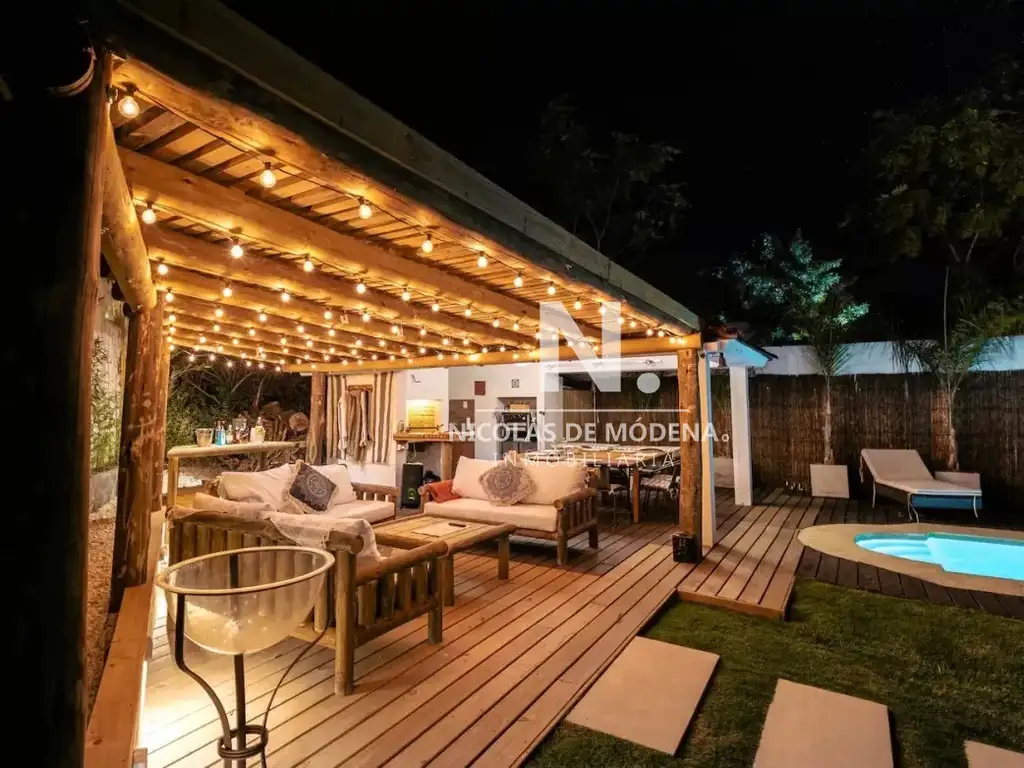 La casa cuenta con 5 habitaciones, lo que la hace ideal para alojar a grupos grandes, dispone de 4 baños para mayor comodidad, tiene capacidad para alojar hasta 10 personas, con un total de 5 camas, con una una cocina semi- integrada que se encuentra equipada con Anafe, microondas, Heladera con freezer, Licuadora, tostadora, Cafetera, campana extractora, Horno y placard.