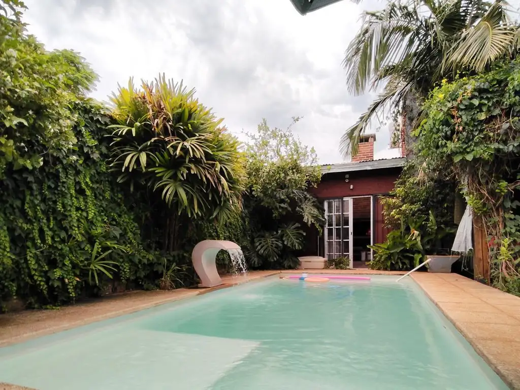 Cochera cubierta para 2 autos, aires acondicionado,Calida cocina comedor completa con alacenas, bajo mesada, luminosa, con entrada directa desde la cochera, conectada con el living y con salida al jardin.Amplios dormitorios uno con luminoso vestidor conectado conel jardin y el otro dormitorio da al patio del frente con placard.Living amplio, comodo, acogedor.El jardin con hermosas y exhuberantes plantas, pergola, arboles, y la piscina como protagonista.Lavadero cubiertoParrillaSala de estar independiente con vista al jardin con baño completo y con entrepiso amplio para uso de tercer dormitorio con vistas al jardin.