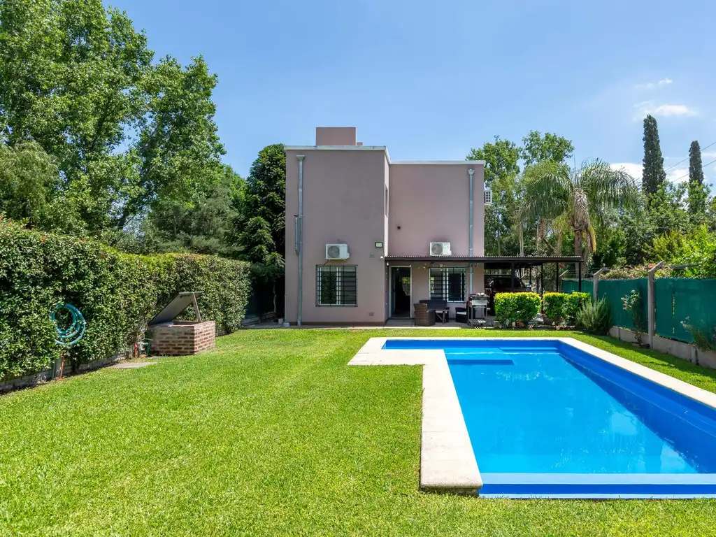 La pileta mide 33 m2, con filtrado automático y jardín con riego automático.