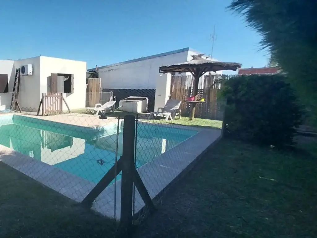 La casa presenta 2 dormitorios, baño completo, antebaño, cocina comedor, living, escritorio, galeria techada con parrillero, pileta y parque totalmente parquizado. Muy solida calidad constructiva, con aberturas de madera, techo de madera, y terminaciones en piedra, rejas y portón de hierro.
