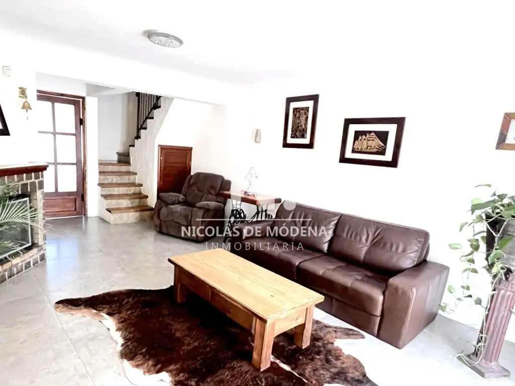 La primera planta incluye living, cocina y baño con ducha. El living cuenta con estufa a leña y pisos de porcelanato. La cocina, recientemente renovada, cuenta con estar, pisos de porcelanato, muebles bajo mesada y campana con extractor. Baño completo en perfecto estado.