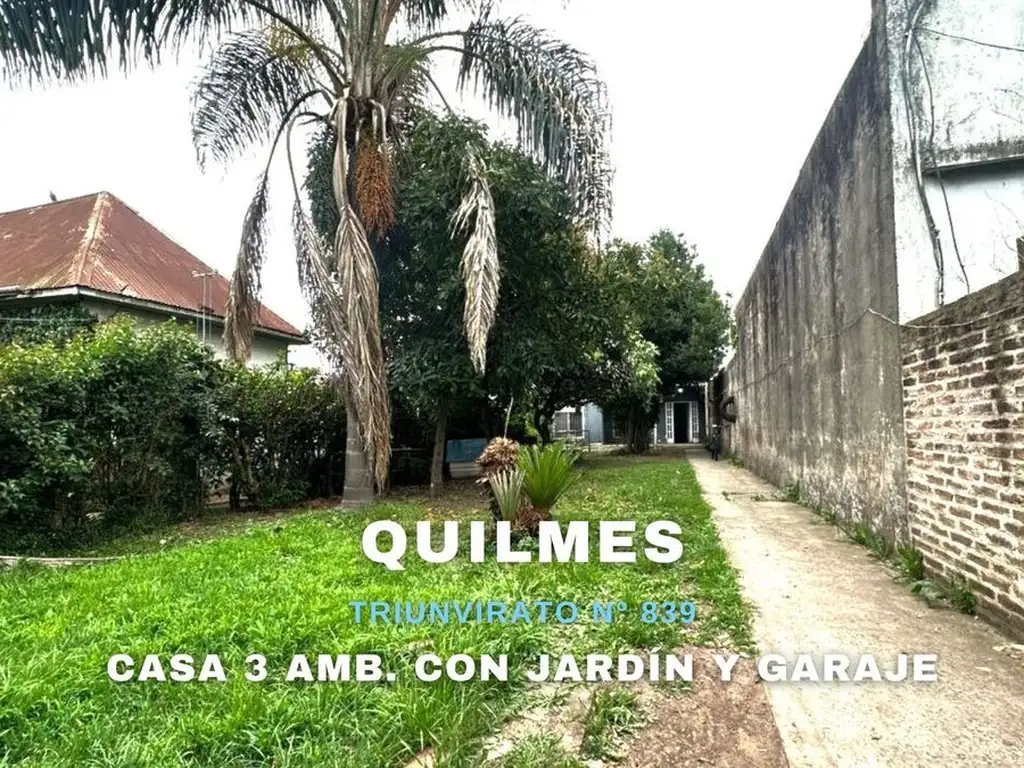 VENTA CASA 3 AMBIENTES CON JARDÍN Y GARAJE EN QUILMES