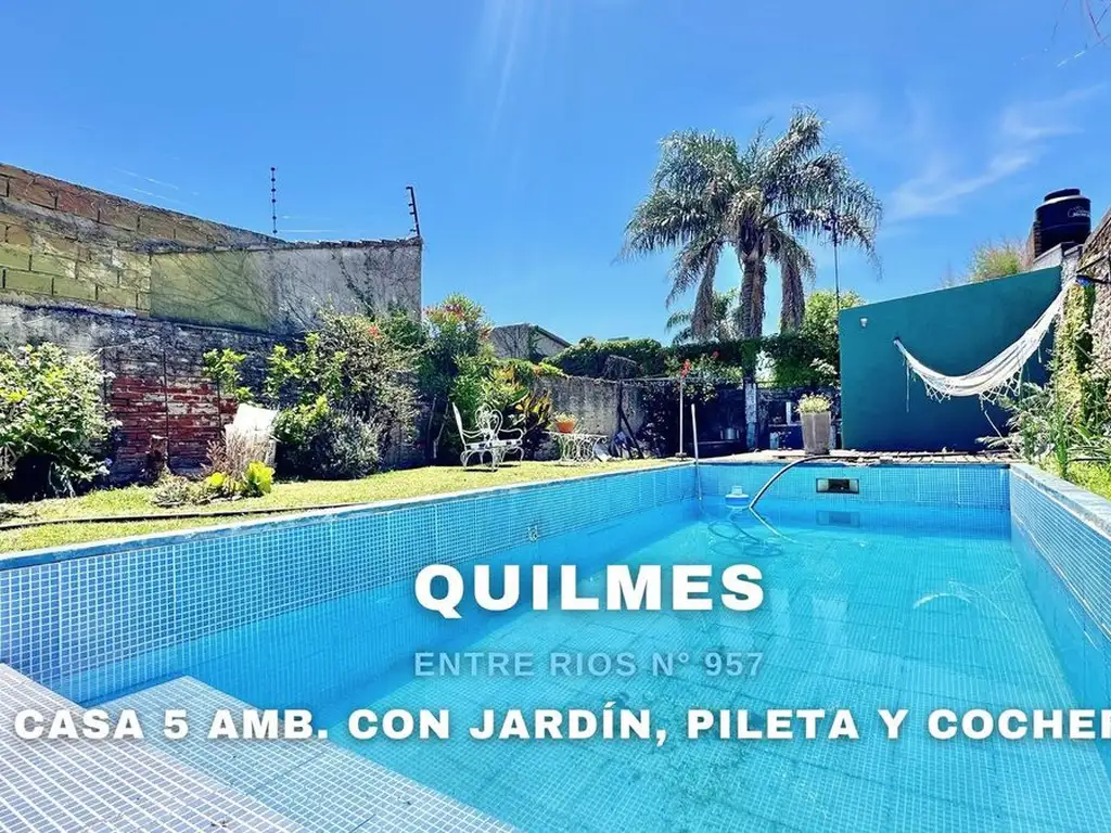 VENTA CASA 5 AMBIENTES CON JARDIN, PILETA Y COCHERA EN QUILMES