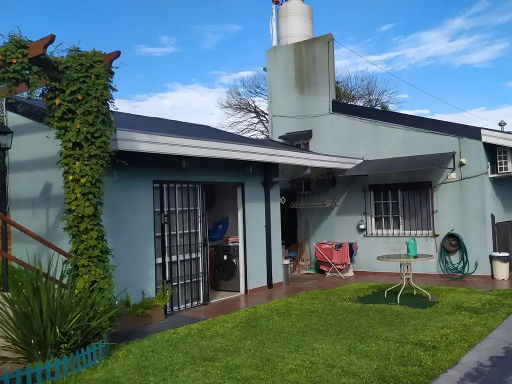 Casa al frente de 2 dormitorios, uno de ellos con placard - amplio living comedor integrado con ambiente de cocina, la cual cuenta con mesada, bajo mesada y alacenas - baño instalado completo - quincho de 90m2 instalado con baño, cocina equipada con mesada, bajo mesda y alacenas, parrilla, amplio entrepiso - Parque con Jacuzzi - lavadero completo - fondo libre - entrada de auto pasante con porton automatizado - sistema de riego - alarma, camaras de vigilancia - tanque cisterna con bomba presurizada - todos los servicios instalados - Lote 8.66 x 43.3.