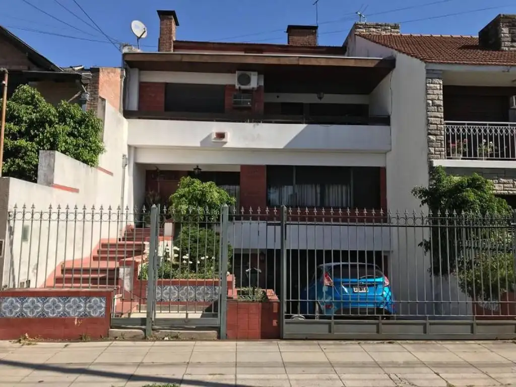 Chalet en dos plantas, A una cuadra de Av. Rivadavia. Jardin de infantes y Colegio enfrente, Lineas de Colectivo, Supermercado cercano. Garage subterráneo para 3 autos, living comedor en desnivel, cocina comedor equipada, baño compartimentado, fondo libre, pileta y quincho. Primer piso, 4 dormitorios con placard, uno en suite, otro baño completo, lavadero. Acceso al primer piso por el contra frente, play room.