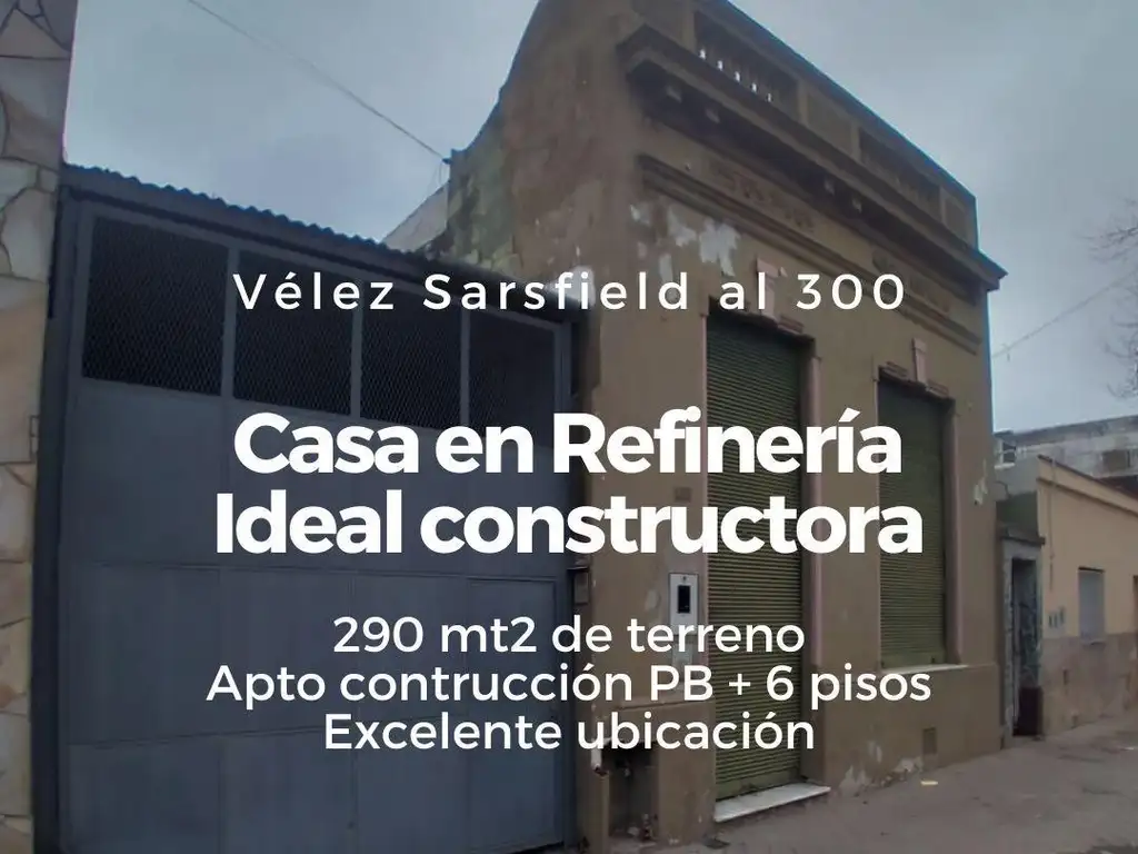 Casa al frente en barrio Refinería apto constructoras (PB+6 PISOS) , con un terreno de 289 mt2 totales.
