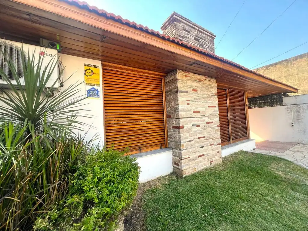 Al fondo del lote se encuentra un quincho de grandes dimensiones, totalmente equipado, ideal para reuniones y eventos durante todo el año. El mismo cuenta con parrilla, cocina, baño propio y cuarto de guardado, lo que lo convierte en un espacio independiente y sumamente versátil.