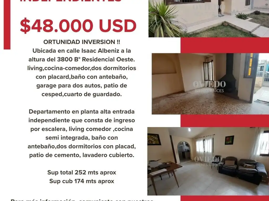 CASA MAS DPTO EN VENTA B° RESIDENCIAL OESTE