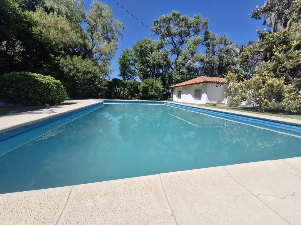 Descripción: la propiedad esta desarrollada en su totalidad en planta baja y tiene una superficie total de 5114,16m2, casa principal con gran espacio social en desnivel, primer baño de servicio, cocina separada, 5 dormitorios, el principal con baño en suite y vestidor, los dos siguientes con baño en suite, y los dos últimos dormitorios comparten el baño ubicado en el pasillo distribuidor intimo, todos con ventanas que dan al jardín, buena iluminación y ventilación natural. Casa de caseros con dos dormitorios y jardín. Quincho completamente equipado, cocina completa y parrillero, con salida a la pileta. Vestuarios para ambos sexos. Cancha de tenis, cancha de bochas. Pileta de material muy bien conservada de 6x2m2.