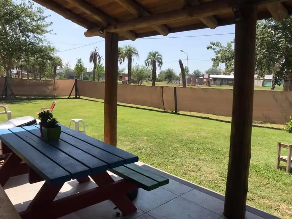 Exteriores: Galería cubierta y parrillero, pensados para disfrutar de asados y tardes al aire libre en un entorno verde y sereno.