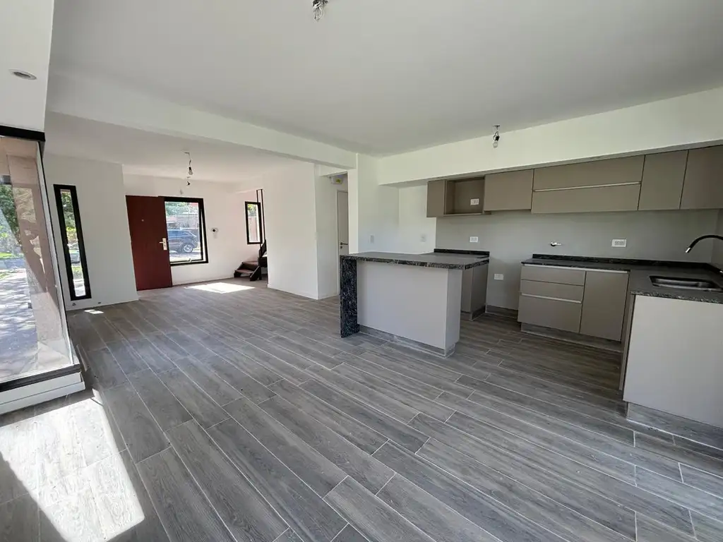 - Living comedor con cocina integrada con barra desayunador.