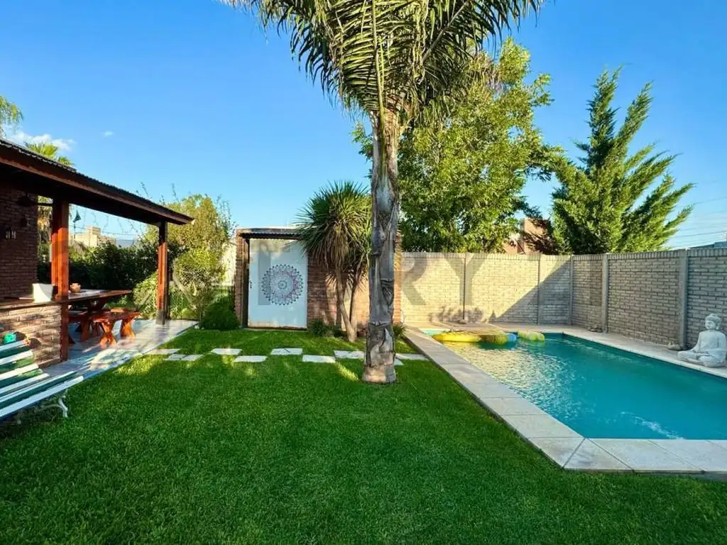 Se conecta con una galería techada con vista a la pileta y al parque