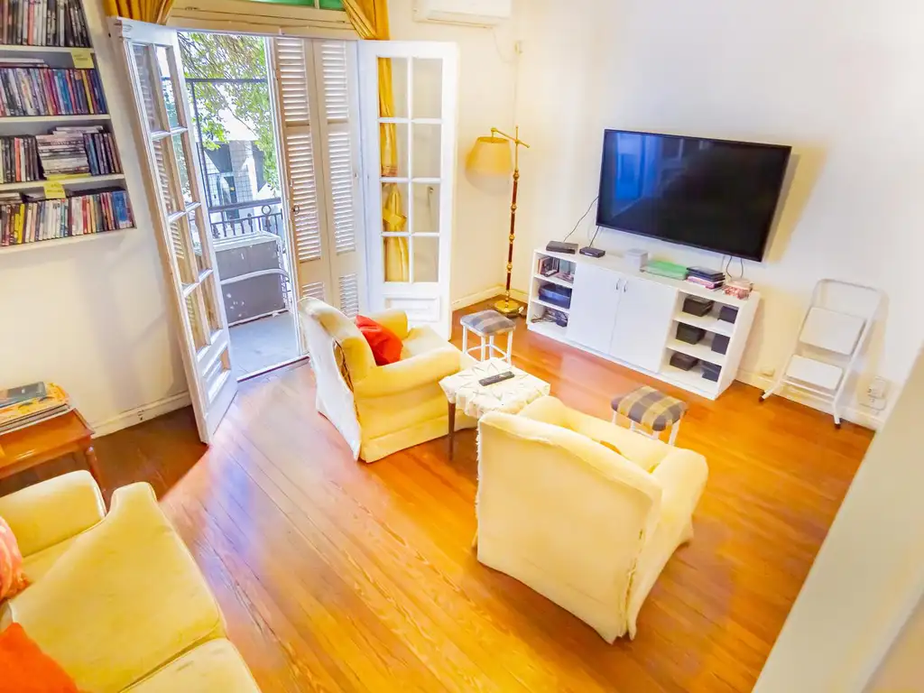 Imponente escalera de madera en perfecto estado comunicando con la planta alta. Amplio intimo. 2 dormitorios al frente (1 con balcón) y 2 dormitorios al contrafrente con salida a terraza (1 con baño en suite). 1 baño completo . Acceso a terraza.