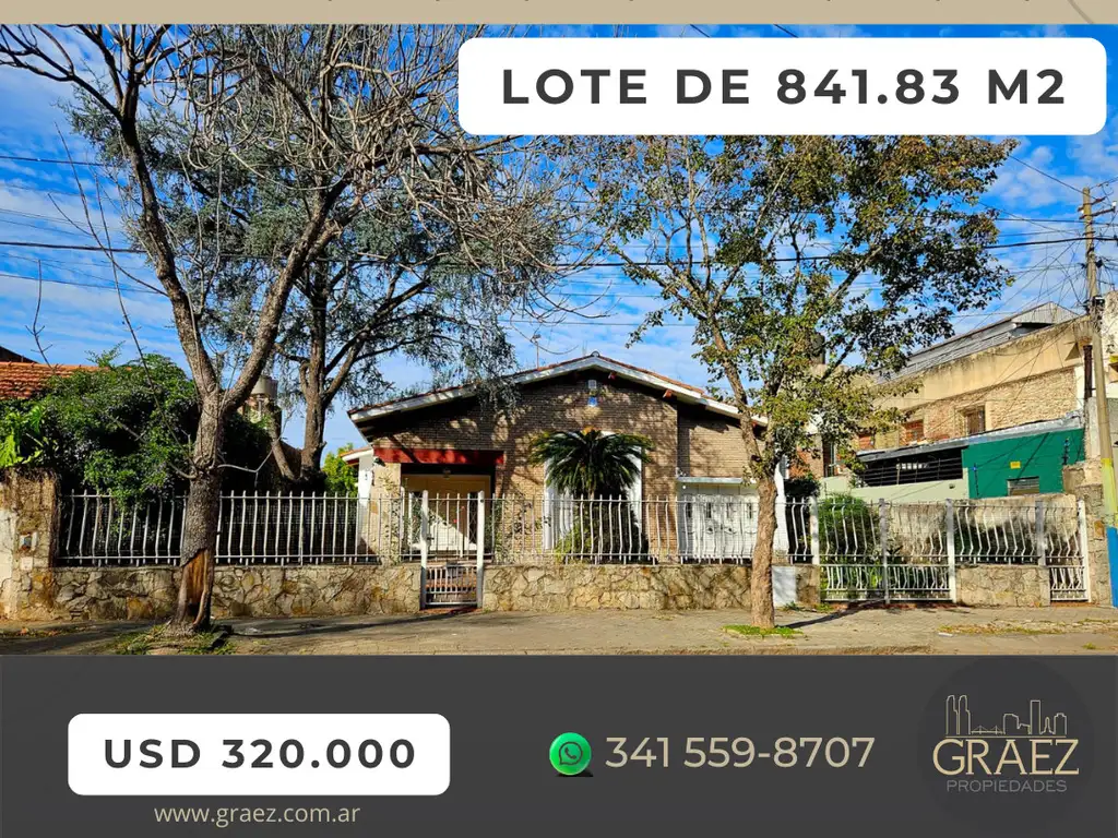Terreno (actualmente CASA tipo chalet de 3 habitaciones, 2 baños (1 en suite), hermoso patio, gran quincho y deposito/taller en el fondo) - Terreno: 841.83 M2