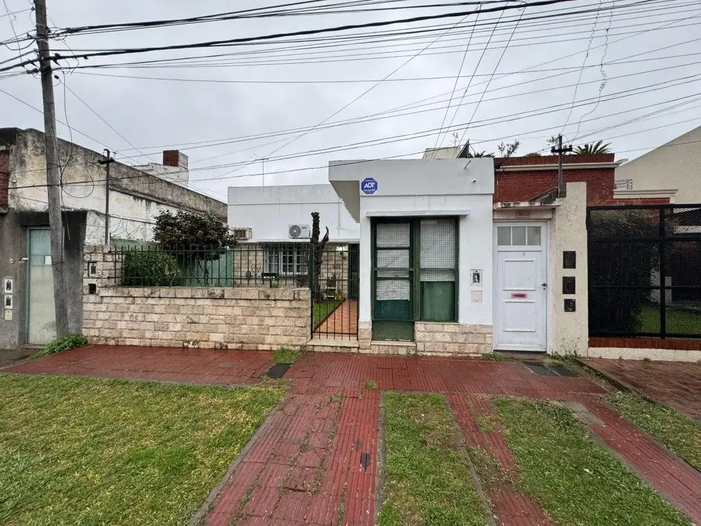 Desarrollada en una sola planta, acceso desde jardín frentista a un hall. Comedor diario. Cocina independiente con ventilación a patio seco trasero con parrillero y lavadero. Un baño completo y dos habitaciones, una utilizada como escritorio y otra como dormitorio principal ventilado al frente. El local del frente es independiente y cuenta con un pequeño baño.
