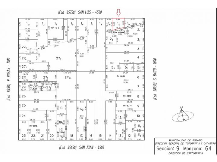 Planta alta: acceso por escalera a palier que está en condominio forzoso e indivisible con el inmueble ubicado en esquina. Al llegar a planta alta hay un hall de distribución con dos puertas: hacia el oeste se ingresa al inmueble compuesto de habitación estar, baño y dormitorio; hacia el este se encuentra un depósito perteneciente al inmueble que se encuentra en la esquina de San Luis y Servando Bayo.