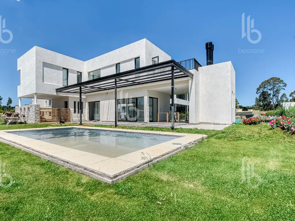 El exterior de la propiedad cuenta con una amplia galería equipada con una parrilla, ideal para disfrutar de momentos sociales y familiares al aire libre. Además, un extenso parque rodea la casa, ofreciendo un entorno sereno y natural, complementado por una lujosa piscina al aire libre que invita al esparcimiento.