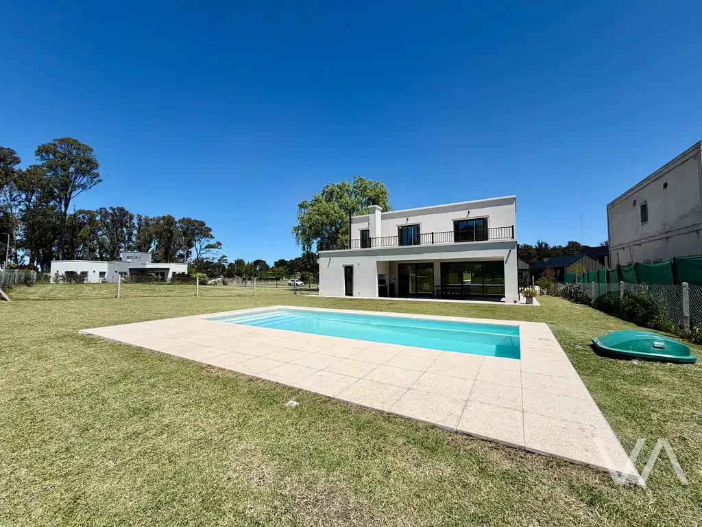 Galería con parrilla, amplio jardín y piscina con solarium. Espacio semicubierto para un vehículo, y trotadora para 4 más.