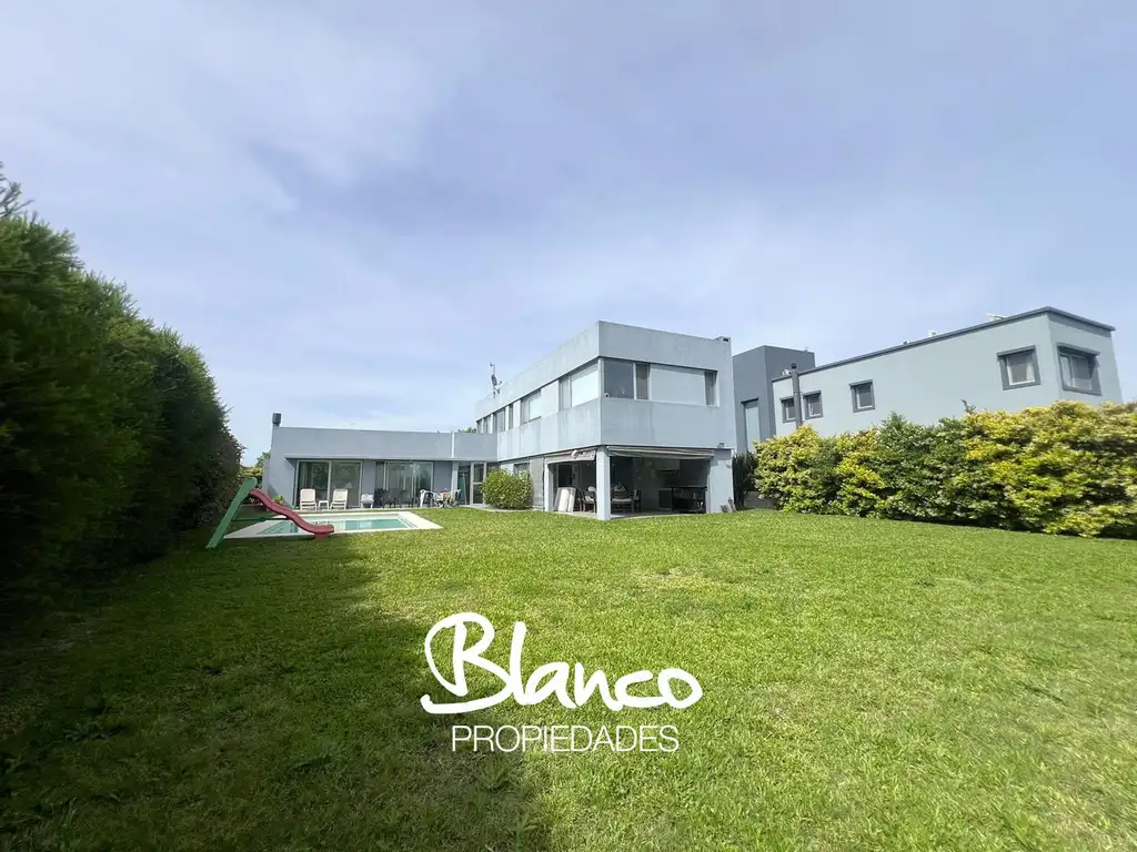 Exterior: amplia galería con cerramiento de PVC, jardín parquizado con riego, fogonero, camastros y muelle. Cochera para 3 autos.