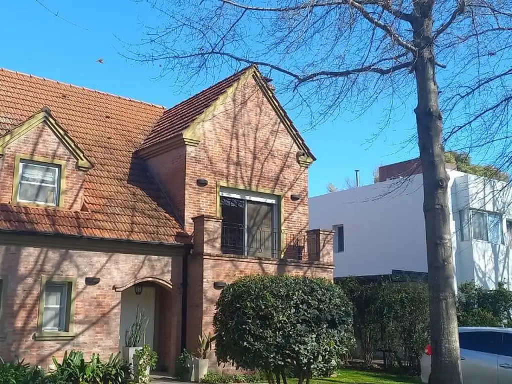 Exterior amplia galería con parilla. Pileta revestida en venecitas y solarium. Jardín que rodea la propiedad totalmente parquizado, iluminación y arbolado. área de estacionamiento para varios vehículos