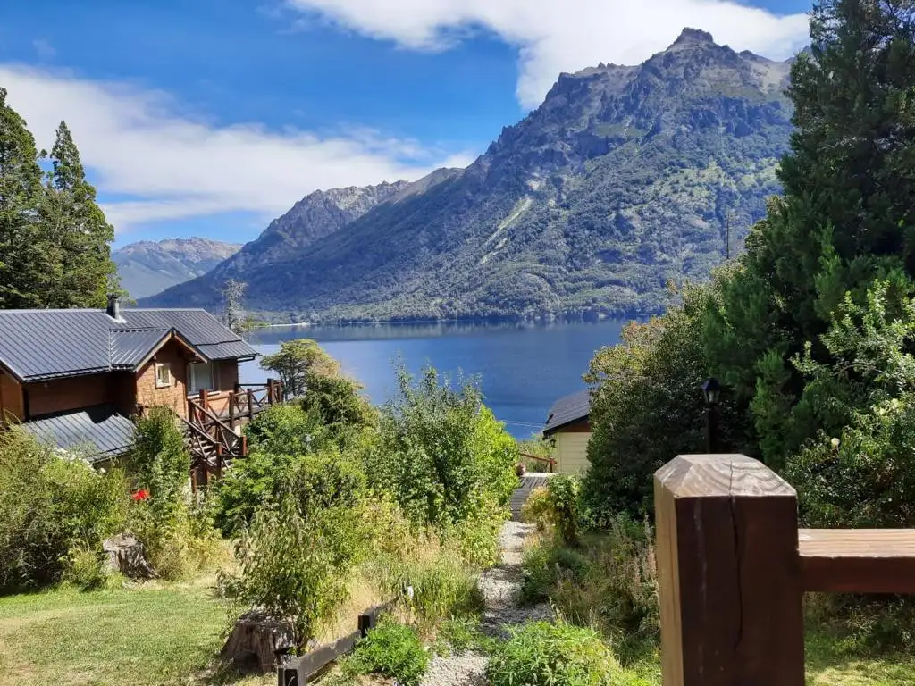 Se trata de un lote de casi 1 hectárea, con pendiente moderada y en zona de bosque nativo, en el corazón del Parque Nacional Nahuel Huapi. Posee ingreso por la ruta 40 y por la calle interna del barrio. Cuenta con 4 casas y un sum/quincho, que se componen de la siguiente manera:
