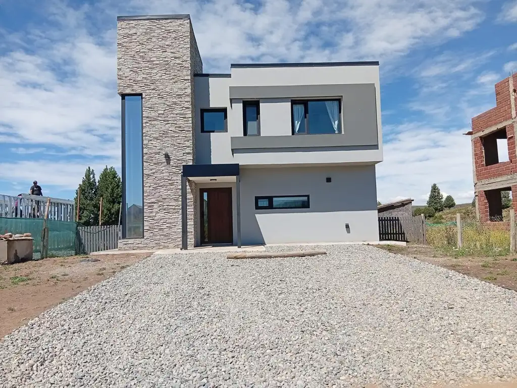 Tiene calefacción por losa radiante en ambas plantas. Los pisos son de porcelanato de gran tamaño, la grifería es de primera calidad, tiene caldera dual marca CALDAIA, que controla el agua caliente y la calefacción. Todas las aberturas son de PVC color negro y paneles de DVH que dan muy buena conservación del calor interno. La escalera y los detalles de madera son de lenga, dándole una calidez especial.