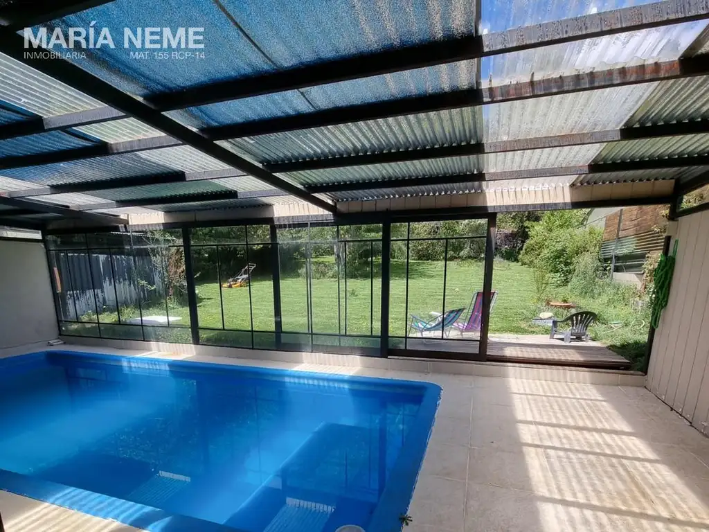 La presencia de una pileta climatizada, accesible tanto desde el interior de la vivienda como desde el jardín, añade un valor extra a la propiedad, además ofrece un entorno verde que es ideal para familias que buscan tranquilidad y contacto con la naturaleza.