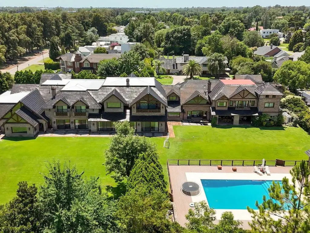 Esta propiedad posee mas de 2600 metros cubiertos y se encuentra diseñado en dos alas. En 6.000 metros de terreno, con parquizacion diseñada por sus propios dueños, gran pileta externa climatizada con deck y solarium, zona de asadores y un gran quincho cerrado con vestuario - baños y cuarto de guardado.