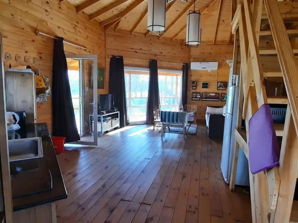 Construida íntegramente en madera elevada a 2 mts del piso, de forma octogonal, con techo de chapa con una superficie total cubierta de 116 mts2. distribuido entre el living, comedor y cocina. Posee 2 dormitorios con vista a la arboleda posterior y 1 entrepiso abierto de 35 mts 2 que puede funcionar como dormitorio, playroom o lugar de altillo para adolescentes. 1 Baño completo. entre los cuartos.