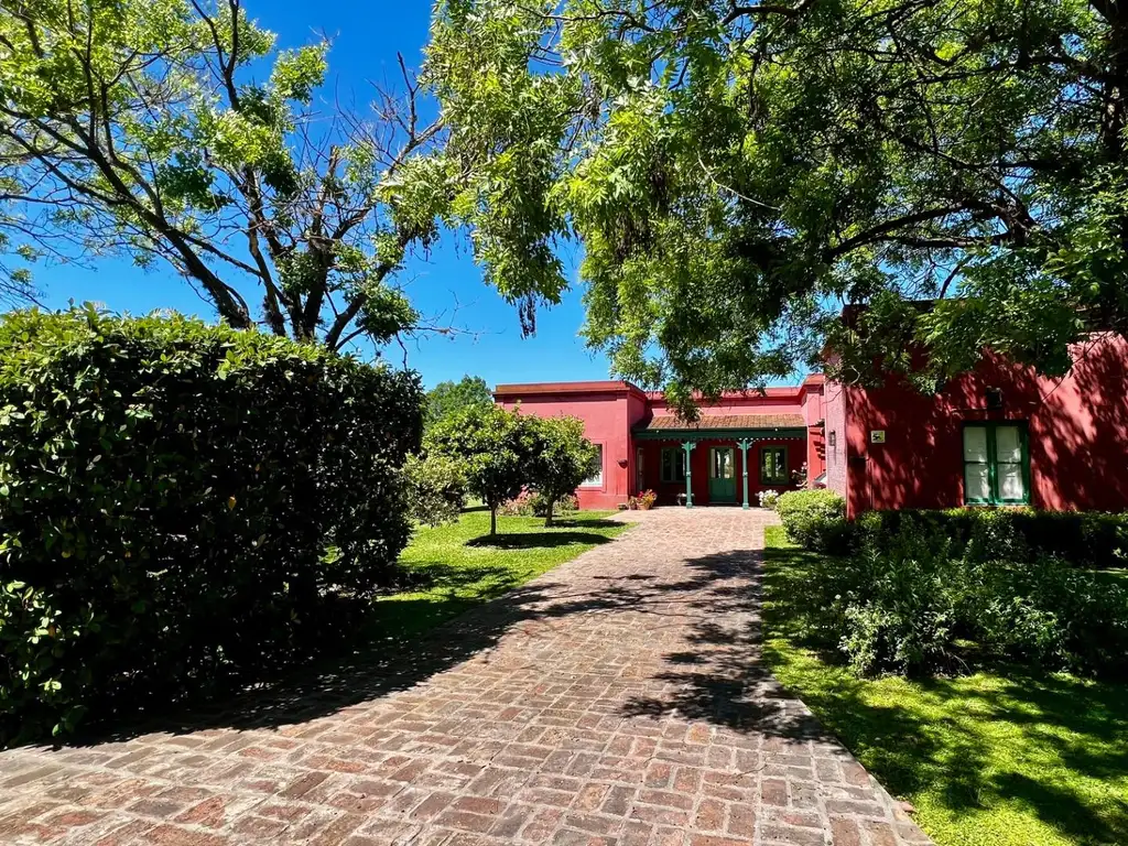 Casa estilo campo, con muy buenos detalles de diseño, está compuesta de: amplio porch; living con buenísimo ventanal con vista a jardín y laguna; comedor con hogar a leña; cocina; toilette con ducha; dormitorio con placard, baño compartimentado en suite, con bañera; dormitorio y baño para huespedes; galería; cochera tipo pérgola, entrada descubierta para varios autos. Muy buen jardín con arboles, flores y cítricos varios.