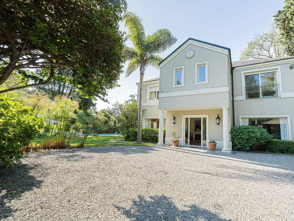 Casa de 317 m2 cubiertos y 69 m2 de galería retirada del frente de la calle con pileta de 47m2 y amplio jardín con variedad de árboles, arbustos y plantas tanto en el perímetro como el interior del terreno.