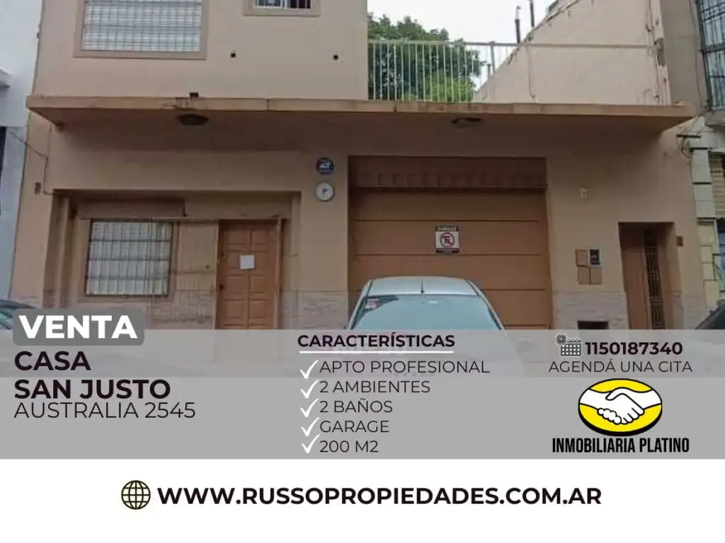 Se ofrece en venta esta casa de 2 ambientes ubicada en una zona estratégica de San Justo, partido de La Matanza, ideal tanto para uso profesional (apta profesional).