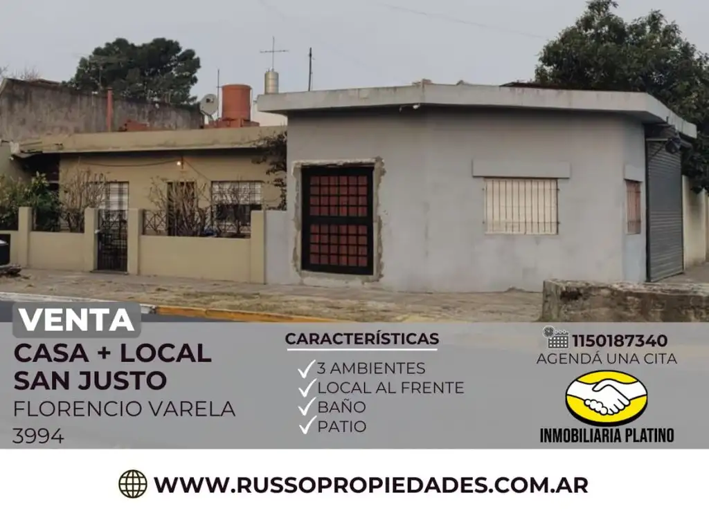 Oportunidad ideal tanto para vivienda como para inversión comercial. Ubicada en una zona estratégica de San Justo, esta propiedad combina una casa de 3 ambientes con un local al frente, permitiendo múltiples usos.