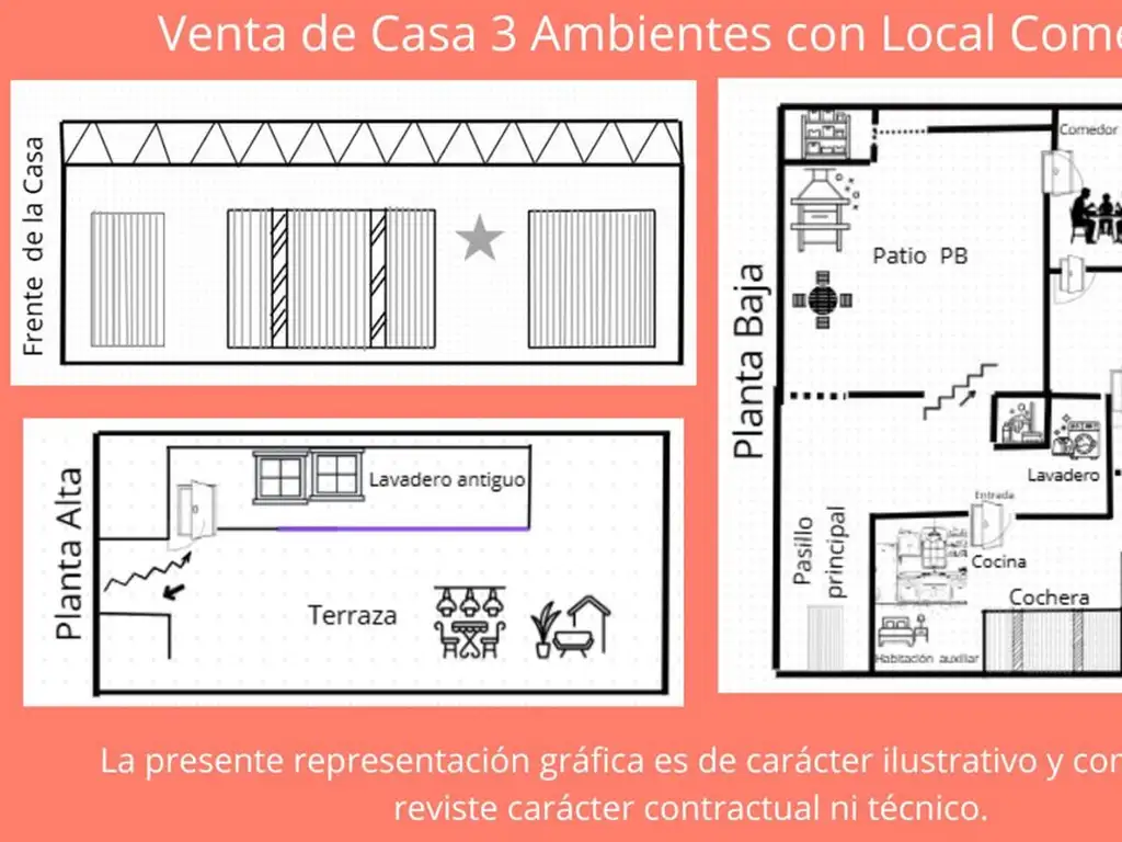 Venta de Casa 3 Ambientes con Local Comercial